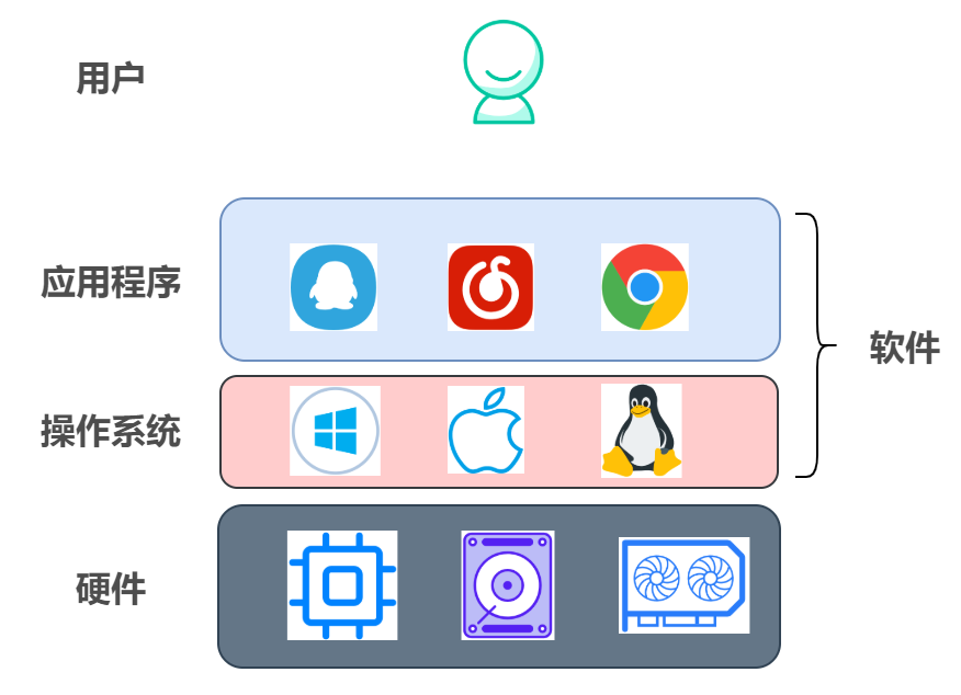 ⭐ 总结一下:操作系统本质上是运行在计算机上的软件/程序,作为硬件基础上的第一层软件,操作系统是硬件和各种软件沟通的桥梁。其功能大致可分为两个部分: