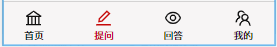 <ion-tabs id="ion-tabs" class="tabs-icon-top tabs-stable tabs-color-active-energized"> <!-- Dashboard Tab --> <ion-tab title="首页" icon-off="ion-home" icon-on="ion-home" ng-click="ss('tab.tab1')"> <ion-nav-view animation="slide-left-right-ios7" name="tab-tab1"></ion-nav-view> </ion-tab> <!-- Chats Tab --> <ion-tab title="提问" icon-off="ion-help-circled" icon-on="ion-help-circled" ng-click="ss('tab.tab2')"> <ion-nav-view animation="slide-left-right-ios7" name="tab-tab2"></ion-nav-view> </ion-tab> <!-- Account Tab --> <ion-tab title="回答" icon-off="ion-clipboard" icon-on="ion-clipboard" ng-click="ss('tab.tab3')"> <ion-nav-view animation="slide-left-right" name="tab-tab3"></ion-nav-view> </ion-tab> <ion-tab title="我的" icon-off="ion-person" icon-on="ion-person" ng-click="ss('tab.tab4')"> <ion-nav-view animation="slide-left-right" name="tab-tab4"></ion-nav-view> </ion-tab> </ion-tabs>