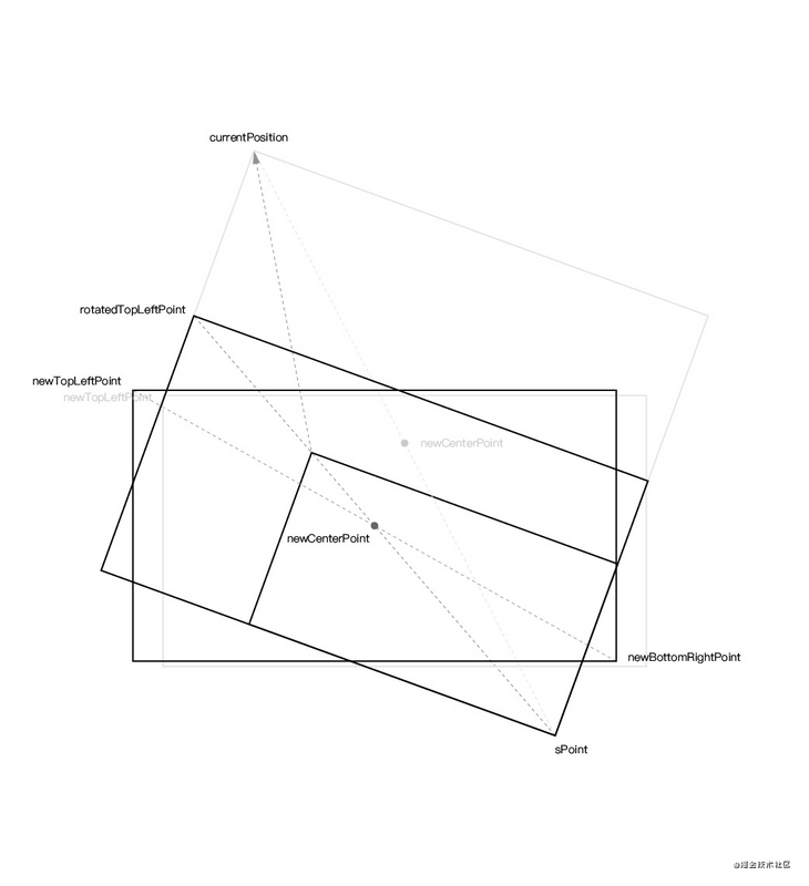 在 mouseup 事件触发时,需要对选中区域内的所有组件的位移大小信息进行计算,得出一个能包含区域内所有组件的最小区域。这个效果如下图所示: