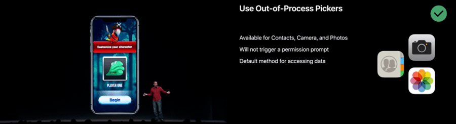 以用户为中心是苹果的企业文化,这种文化也体现在了对隐私特性的设计上,强调隐私特性也要有很好的用户体验,比如,在WWDC 2017推出、在WWDC 2018重点强调的照片选择器,使得应用不能一次读取全部照片,保护隐私的同时,对用户而言,省掉了反复决策是否给予照片权限的操作;对开发者而言,不仅省掉了反复向用户索要授权的开发工作,更重要的是,避免了申请授权被拒绝的危险。这一切,只需要调用苹果提供的照片选择器即可完成。更少的开发量获得更隐私更快更好的用户体验,正常的应用是没有理由拒绝适配的。后文将分析的具体隐私特性,也可看出这一点。