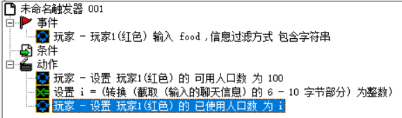 如此设置后,我们可以设置玩家的占用人口为5、15、25、35、……、95、105,来对应地激活1、2、3、4、……档位的食物提示信息。