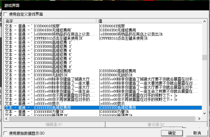 确保勾选本窗口左上角的【使用自定义游戏界面】,然后找到【无维修费用】、【低维修费用】、【高维修费用】、【高维修费 2】、……