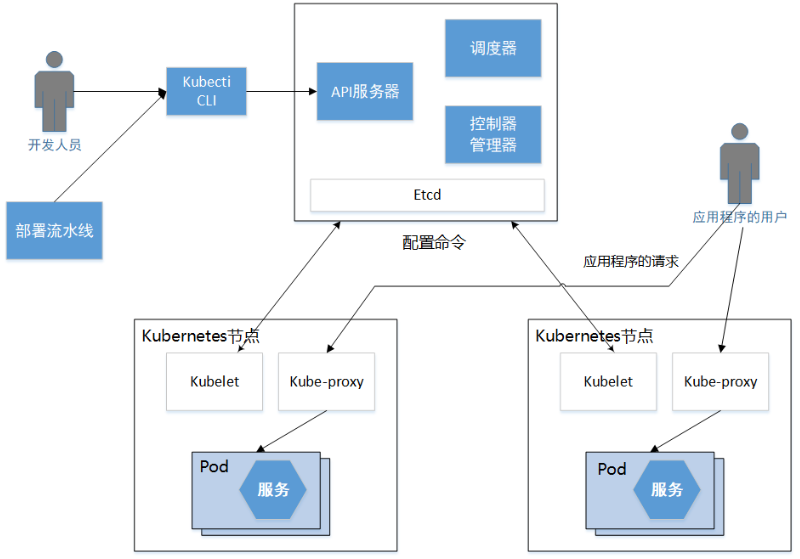 API服务器:用于部署和管理服务的REST API,例如,可被kubectl命令行使用。 -