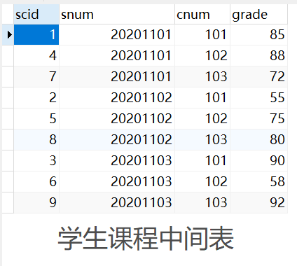 -- 学生课程中间表