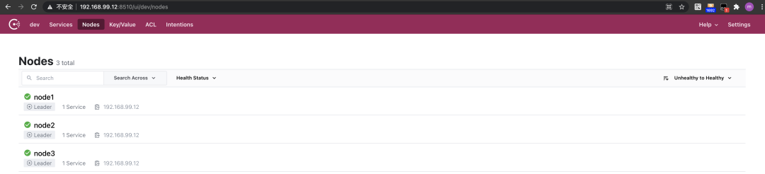 Nginx实现动态负载均衡,首先需要一个服务发现集群,通过集群中注册的信息动态更新nginx的配置,实现动态负载均衡。因此首先准备一个Consul集群