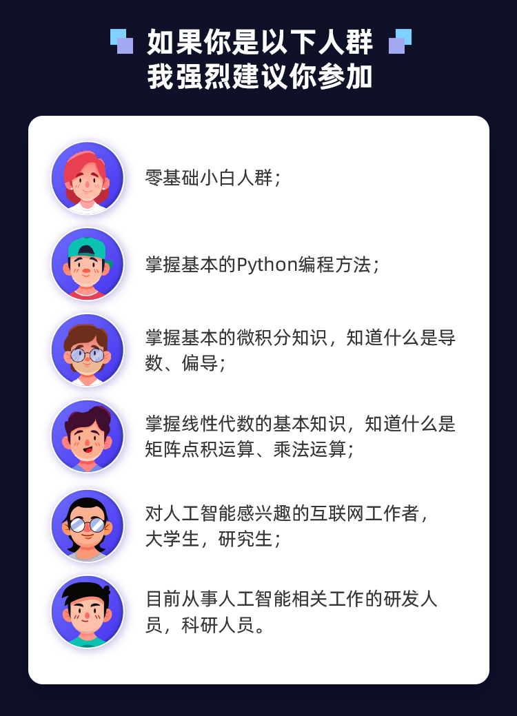 不管你是零基础的小白,还是对人工智能感兴趣的互联网工作者,亦或是从事该行业的研发人员,为期3天的训练营课程,你都值得拥有,所以尽管来吧!