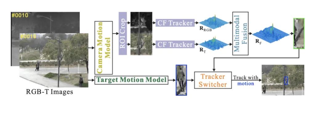 JMMAC的工作流程。基于CF的跟踪器用于对外观提示进行建模,同时考虑了相机和目标运动,从而获得了可观的性能: