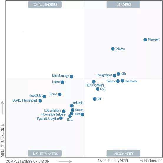 图3 Gartner2019年分析与BI平台魔力象限