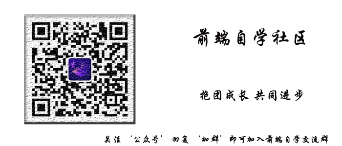 关注后回复关键词“加群”, 即可加入 “前端自学交流群”,共同学习进步。