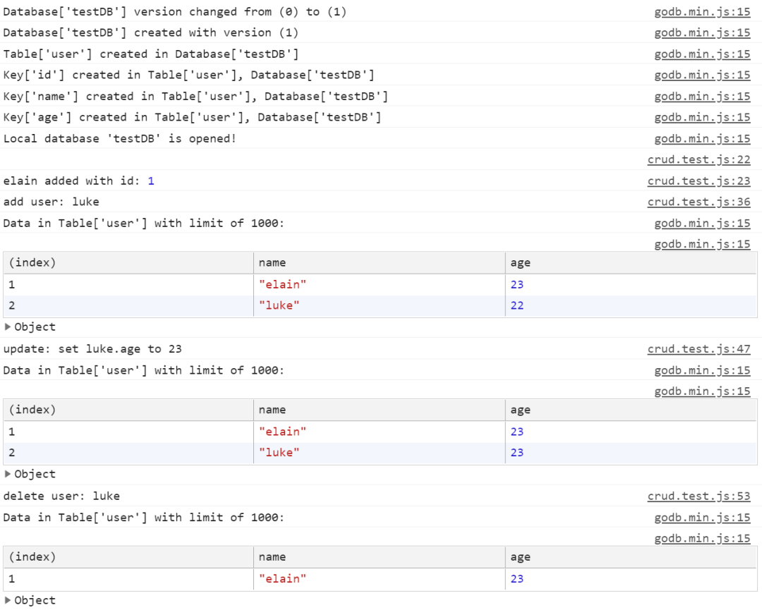 godb: await Godb.open('testDB') // 不加 await 返回的就是 Promise 了