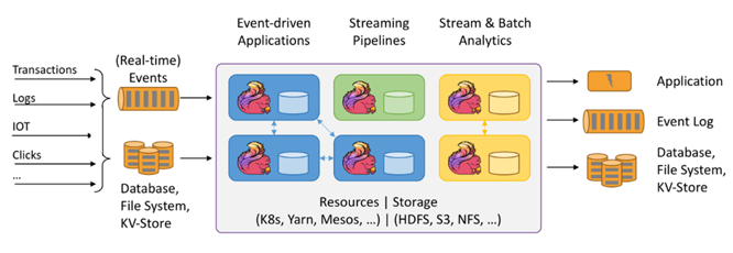 Flink可以用于很多的计算场景中,这里列举了3个,Flink可以处理事件驱动的程序,除了简单事件,Flink还提供了CEP库可以处理复杂事件;Flink还可以作为数据管道,做一些数据清洗筛选、转换等操作,把数据从一个存储系统转移到另一个系统;Flink可以做流或批式数据的分析、指标计算,用于大屏展示等。Flink已经成为业界公认的流式处理的第一选择。
