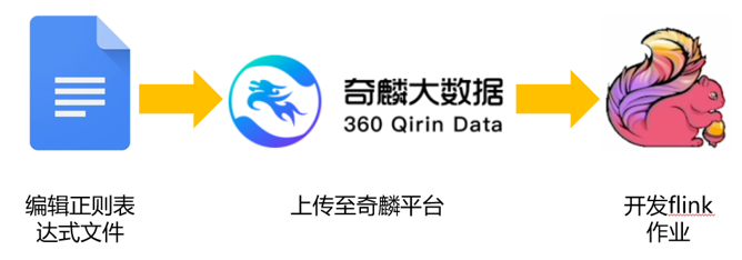 把正则匹配引擎整合到Flink中,借助Flink强大的分布式能力,强强联合,那么将会发挥更大威力。所以提供了这样的解决方案,如下图所示: