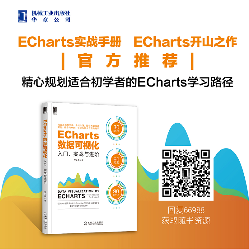 >>《ECharts数据可视化:入门、实战与进阶》是一本由 ECharts 官方推荐,系统全面、由浅入深、注重实操,带领读者快速从新人到高手的书籍。欢迎参与文末赠书活动 。
