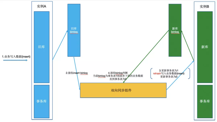 在这里顺便提一下,阿里云DTS做同构数据迁移,使用的是数据库自增ID做为唯一ID使用的,这种情况如果做双向同步,会造成数据覆盖的问题。解决方案也有,之前我们的做法是,新旧实体采用自增ID单双号解决,保证新旧实例的自增ID不会出现冲突就行。因为这次我们使用的自研双向同步组件,这个问题这里不细聊。