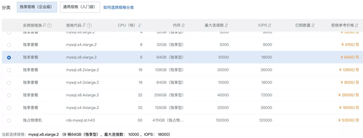 后续如果实例压力提升可进行实例配置升级(16C/128G、32C/128G、32C/256G等);未来如出现单实例升配无法解决,在考虑扩容实例,只需要将database迁移至新实例,迁移成本较小。
