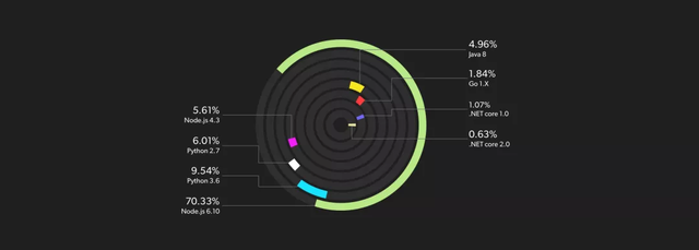 对于 Python、JavaScript 这种天生支持 Lambda 的开发语言,和 FaaS 简直是完美结合。Serverless Framework 的调研报告也很好地说明了这一点。NodeJS、Python 是 FaaS 使用率前二的语言。