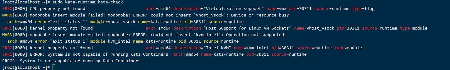arch=amd64 error="exit status 1" module=vhost_vsock name=kata-runtime pid=1932 source=runtime