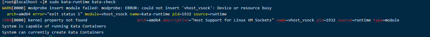 ERRO[0000] kernel property not found arch=amd64 description="Host Support for Linux VM Sockets" name=vhost_vsock pid=1932 source=runtime type=module