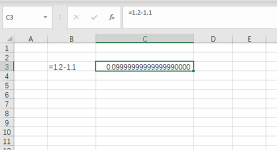通常对于误差较小的结果,Excel可以自行修正,但是向1.2-1.1的结果Excel却没有处理。