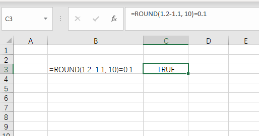 因此,在进行数值比较的时候使用ROUND是一个好习惯,可以根据业务场景涉及到的小数范围设置参数。例如:=ROUND(1.2-1.1, 10)=0.1。