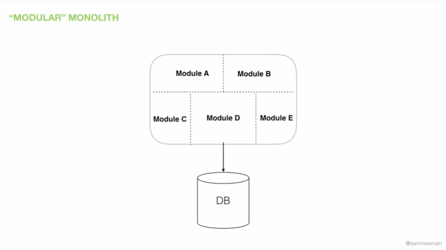 虽然这看起来很奇怪,但归根结底这是一种对冲架构。人们认识到,分解单体架构时最困难的工作之一是处理数据层。如果我们能提前设计好与这些模块相关联的独立数据库,以后迁移到单独的微服务就会更容易。如果我正在处理模块 C,我对与模块 C 关联的数据具有完全的所有权和控制权。当模块 C 变成一个单独的服务时,迁移它应该会更容易。