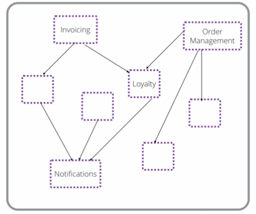 首先要做的是问下从哪里开始,什么事情可以优先处理,我们的工作单元是什么。在图 5 所示的初始单体中,我们有订单管理、发票和通知。DDD 建模练习将使我们了解它们之间的关系。但愿我们能得出一个有向无环图,来描述这些不同功能之间的依赖关系。(如果我们得到是一个依赖关系的循环图,我们就得做更多的工作。)我们可以看到,在这个单体中,有很多东西都依赖于向客户发送通知的能力。那似乎是领域的核心部分。