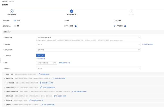 配置完基本信息后,下一步进入应用部署配置: