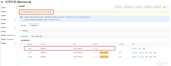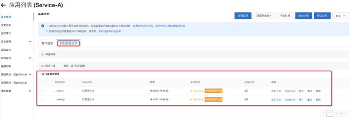 进入应用详情页的实例部署信息,可以看到应用的具体实例: