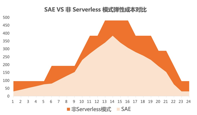 对于弹性能力,大家可能更多的是关注它能让系统快速支撑流量脉冲,增加系统横向扩展的能力。其实因为SAE有极致的弹性能力,再加上按分钟、按量计费的模式,对整体的资源成本是有一定优化的。