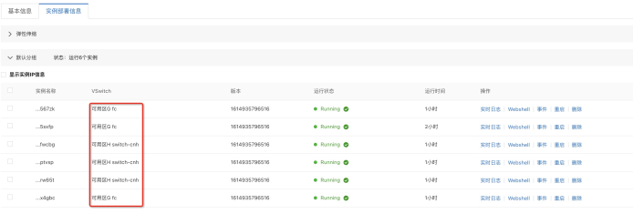 本着鸡蛋不能放在一个篮子里的原则,一个应用的多个节点,应该分布在不同的可用区,这样整体应用的高可用和健壮性才是足够好的。SAE支持设置多个交换机(VSwitch),每个交换机可以在不同的可用区,这样在部署、扩容应用的节点时会随机从可选的可用区拉起实例: