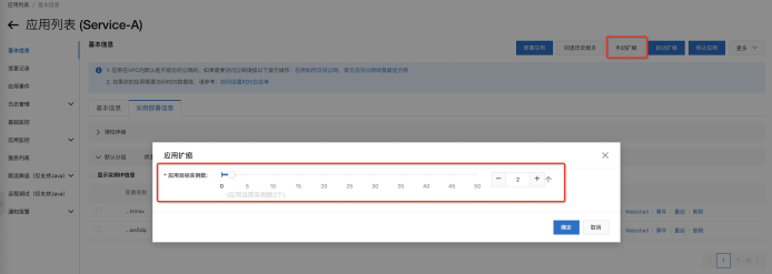 在控制台右上方有手动扩缩操作按钮,然后选择要扩缩到的实例数即可: