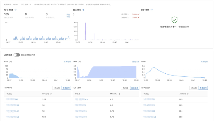 进入应用详情页,点击左侧菜单中的应用监控/应用总览,便可以看到应用的整体状况: