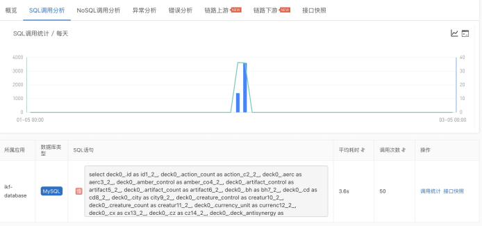 - 慢SQL:智能抓取执行时间大于500ms的SQL。