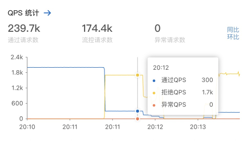 可以看到QPS被精准的控制到50,超过50的请求直接返回失败。