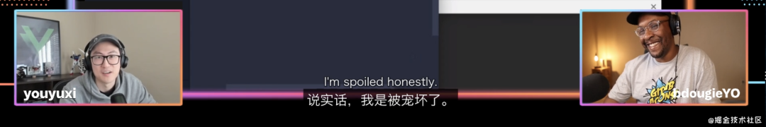 好久没有做这么大型视频的翻译了,上一次还是 React Conf 2018 的翻译[41]。本视频翻译从春节假期 2 月 15 日开始,开工后时间比较少,断断续续花了三周多时间。好在 GitHub 在 Twitch 视频失效后,视频上传到了 YouTube 上,利用其自动字幕功能,后期节省了很多时间。确实 YouTube 的语音转文字功能更为强大。如果发现字幕存在问题,欢迎在视频评论区留言。希望这个视频能够帮助到大家。
