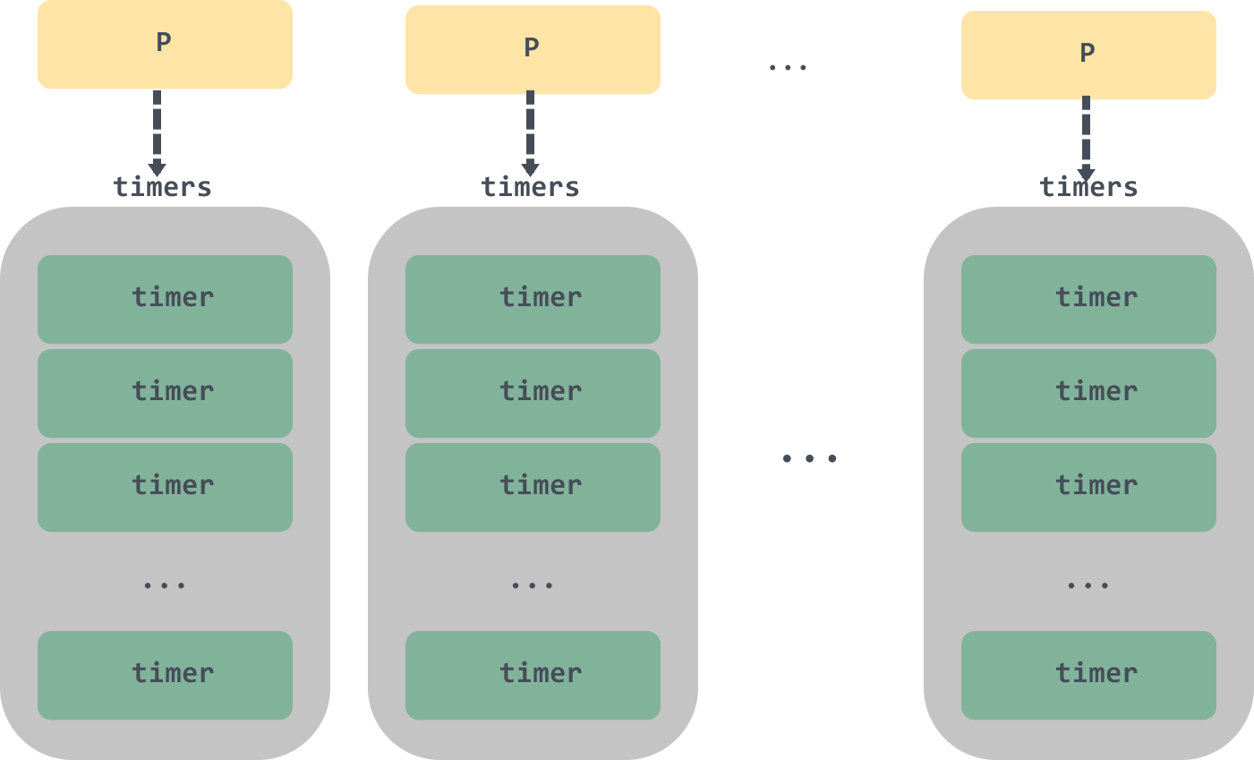 在Go 在1.14版本之后,移除了timersBucket,所有的计时器都以最小四叉堆的形式存储 P 中。