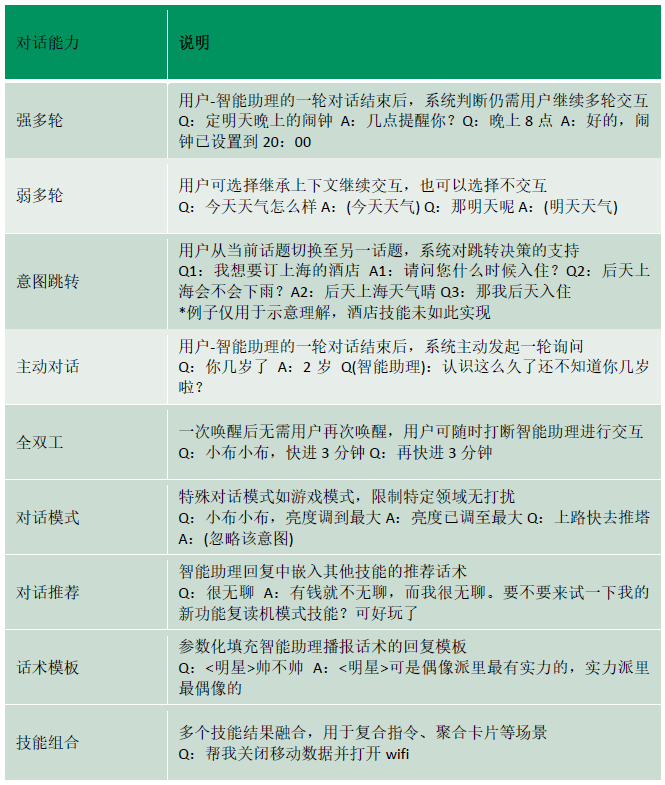 阶段1已支持的强弱多轮和意图识别外,跟随产品特性落地逐步建设覆盖以下对话能力,打造对话产品体验和亮点技能。