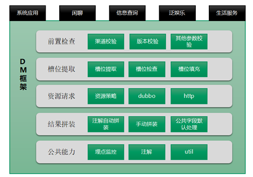 | 统一协议,统一接口 | 各dm服务依赖框架的sdk,实现框架对外定义的统一接口 | 实现了协议的统一,调用的路由注册逻辑 |
