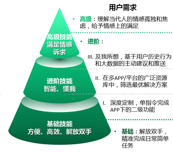 除语音输出输出相关的基础体验外,对话系统的演进目标大致分两个阶段。