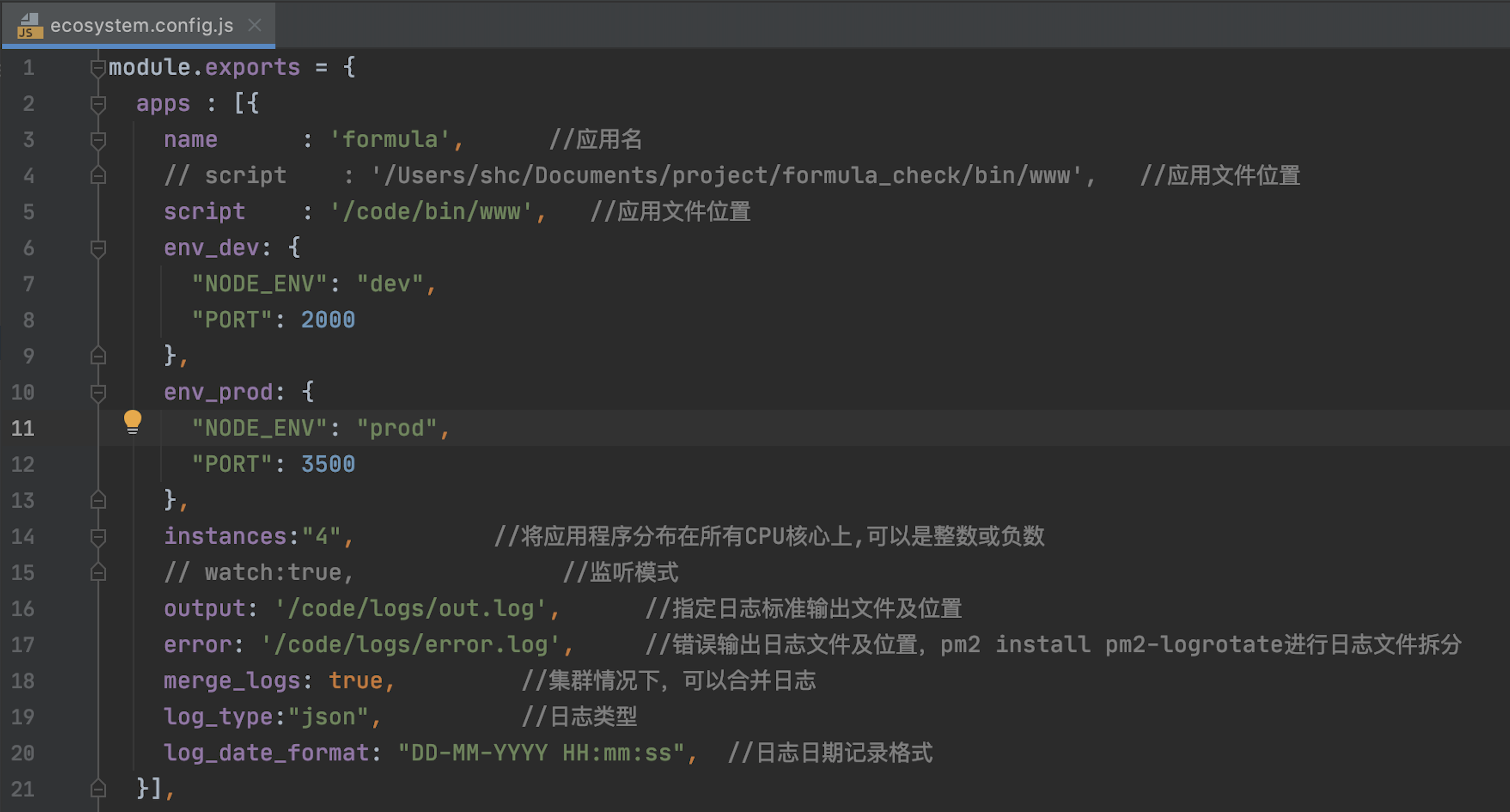 使用pm2部署,配置如下:
