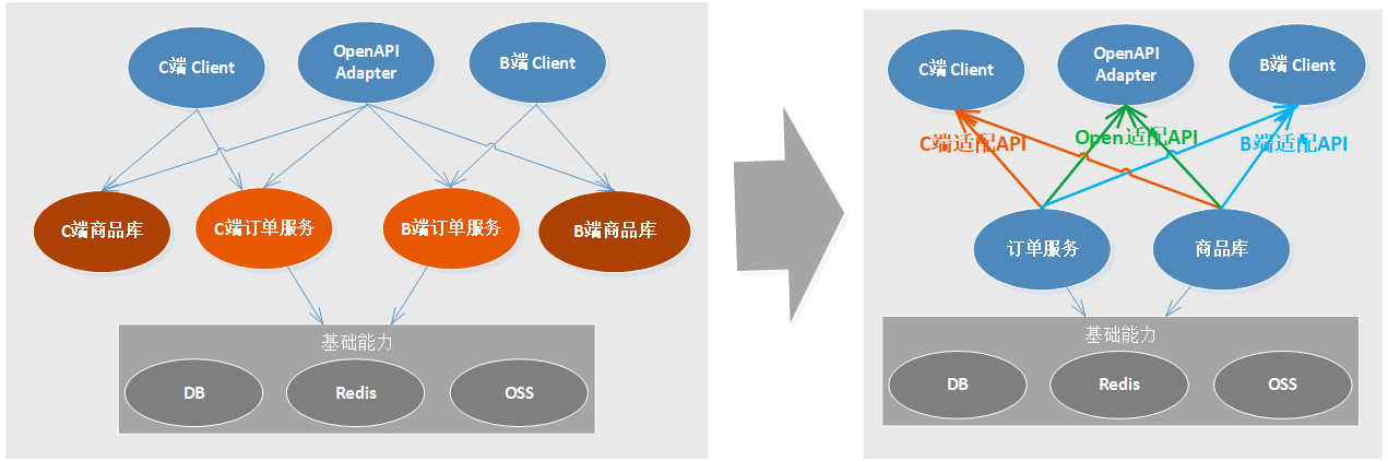 随着中台架构思想的兴起,微服务单元的标准化和可重用性也越来越被重视,本着通用基础服务下,沉定制业务服务上浮的原则,硬生生把海量微服务一刀切为两类,但是大部分中台迎合业务的最终结果就是中台里会添加大量适配业务的模块,导致中台失去了通用性,最终导致中台越来越臃肿,变为糅合了各个业务方逻辑的怪兽。