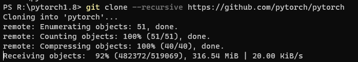 这里—recursive是递归下载Torch依赖的第三方git库。这里存在的问题是,在国内连接github的速度并不稳定,为了以免下载的源码出问题,我选择下载zip打包后的源码。