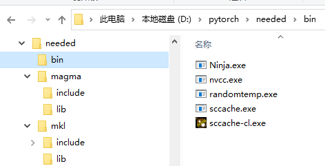 mkl, magma, sccache 和ninja下载解压后最好放在同一个目录下。