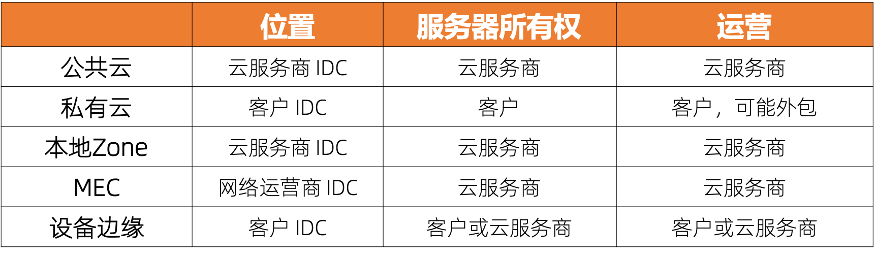 表2总结了我目前所提到的各种云部署模式。随着云在核心数据中心区域之外的分布越来越广泛,我们可以明确地看到一个新时代的到来:分布式云时代。客户在选择部署应用程序的位置时有了更多选择,这样可以节省数据迁移成本、满足极致的延迟要求,并提升用户体验。同样的,在云的所有分布式部署中,一致的体验非常重要。