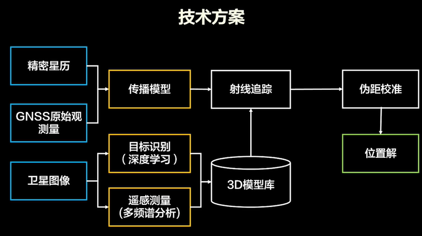 提升到什么程度呢?SuperGNSS技术可以把建筑遮挡的效应彻底抵消掉。首先我们有一个目标识别的深度学习的一个模型,基于这个模型,就可以把一个建筑物的底部轮廓,包括建筑物的坐标完全学习出来。然后用遥感测量中的多频谱分析技术,可以把建筑物的高度给计算出来。有了轮廓再加上高度,那我们这个3D模型库就构建出来了。基于这个3D模型库就可以把最终伪距校准,现在我们的3D模型库可以做到米级的精度。
