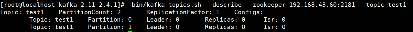 bin/kafka-topics.sh --describe --zookeeper 192.168.65.60:2181 --topic test1