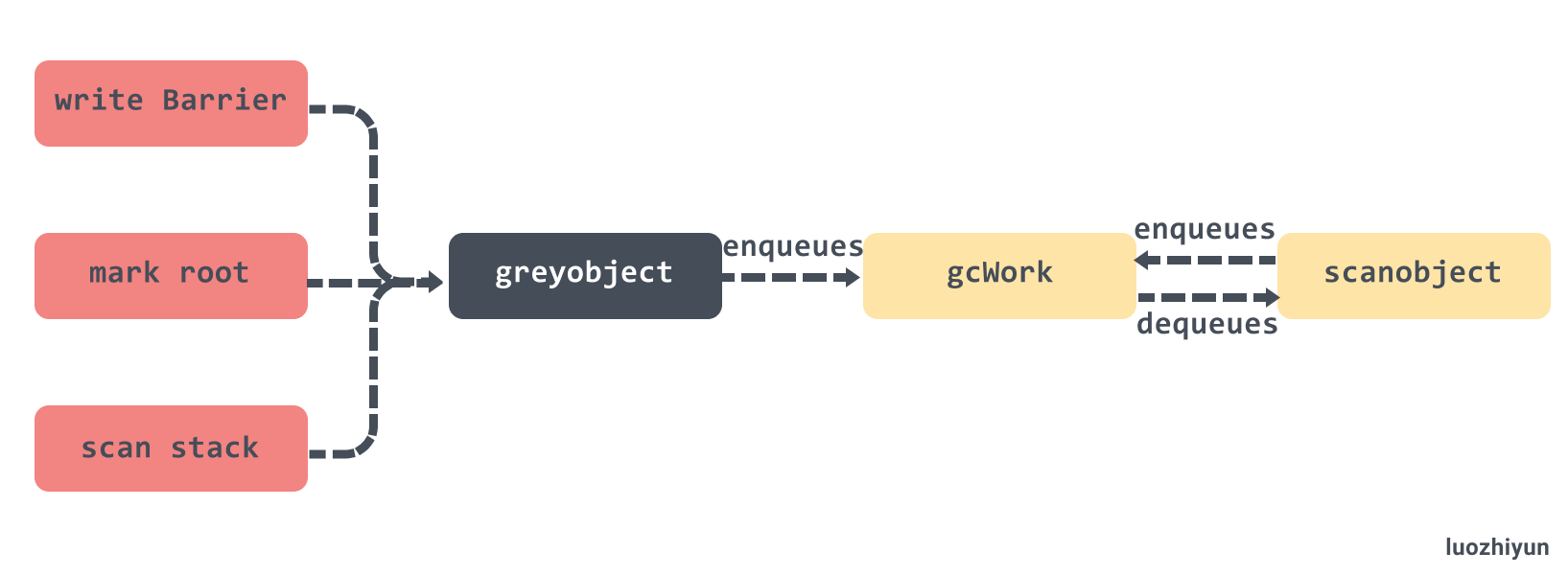 限于我自己工作与学习时间的关系,没有很清楚的讲解好根标记相关的代码,如果自己感兴趣的话不妨可以从 gcBgMarkWorker 来研究一下。