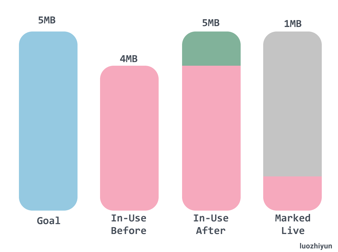 这部分本应该回收 但是没有回收到的内存,被称之为“浮动垃圾”。过程如下图所示: