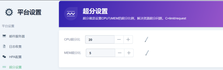 我们使用 KubeSphere,其实对水平伸缩的期望是非常高的。KubeSphere 的资源配置里有水平伸缩,所以我们把水平伸缩这一块单独抽出来设置。水平伸缩的设置配合超分设置,就可以很好地把超分比测出来。