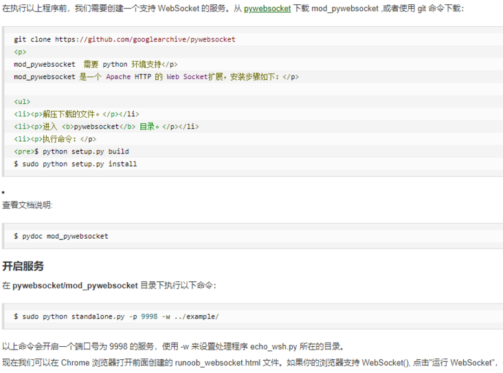 在执行相关的websocket程序前,需要创建一个支持websocket的服务:安装pywebsocket